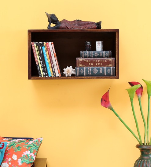 Woodway Solid Wood Wall Shelf In Brown Colour By Woodsworth