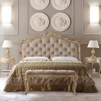 Art22101 Luxurious Gold Color Hand Carving Wooden Bedroom Bed Royal Louis Style Upholstered Bed Crystal Button Buy Luxury Royal Bedroom Furniture